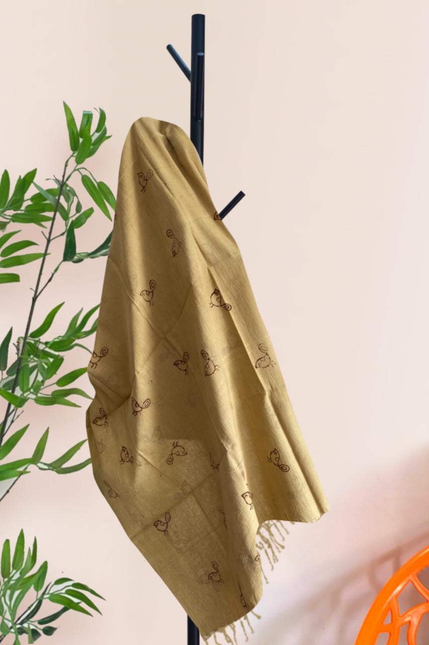 Hortoki natural dye Muslin Scarf Bird Block Printed